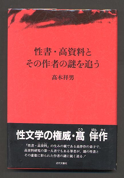 「性書・高資料とその作者の謎を追う」(近代文芸社、平成七年十一月)の作者である高木祥男氏は龍膽寺雄の自称弟子として接点があり、直接話を聞いたことなどを中心に、詳しい考察をされています。補足に書いた東芸版{高資料}の契約書の写真も掲載されています。多少の推理と直接対話の状況から高伴作は龍膽寺雄そのものであることを証明しています。疑問は館主よりも早くから持っていたようですが、本論に刺激を受けて(本論を読んでいた事実はある)か、真相を書き残すことになったようです。