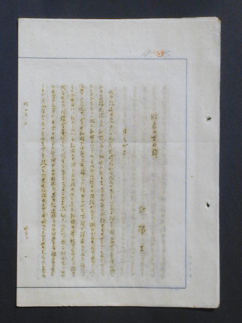 昭和十九年頒布のガリ版資料です。『百合子』、『春画の題材帖』、『上海にて』、『暗色の女の群』が最終頒布になった資料です。この内『上海にて』は完了、それ以外は中途のままですが、『百合子』の他は戦後の復刻版に最後まで復刻されています。『百合子』のみ中断されたままの中途半端な状態で復刻されているのは、新資料のために完結されたものが無かったためと思われます。